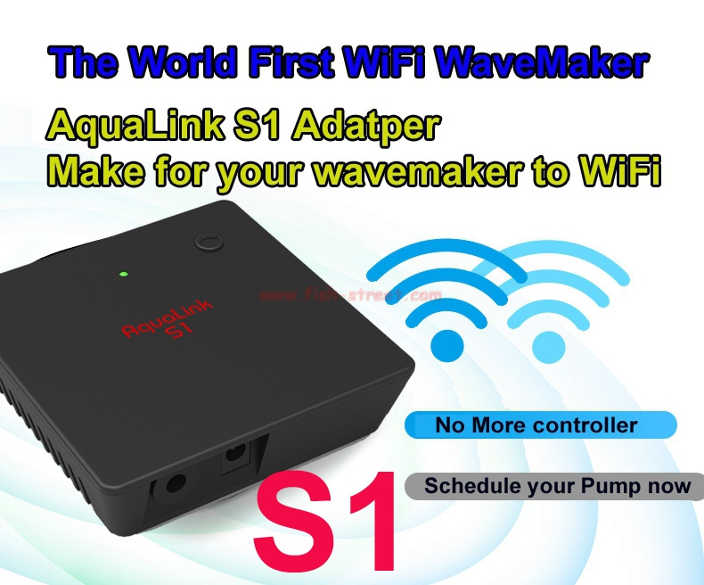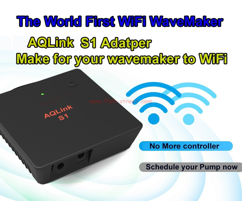As for the S Series of AQLink, it can make for your DC Pump(Jebao 1200/2000/3000/6000/10000/12000) become a WaveMaker function)