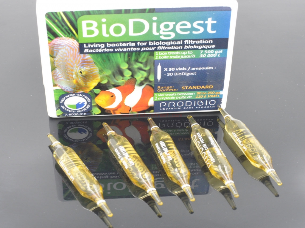 BIO DIGEST is a hyper-concentrated bacterial compound that satisfies two functions: Installing biological filtration and digesting aquarium waste.