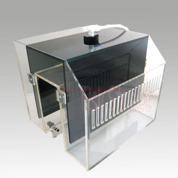 This aquarium overflow box works fine in my 225 liters tank. However, every 10 days it generates a little air bag that I must to remove using the suction tubing for remove the air. But it works silently and I've never had any problem with it since 5 months ago.