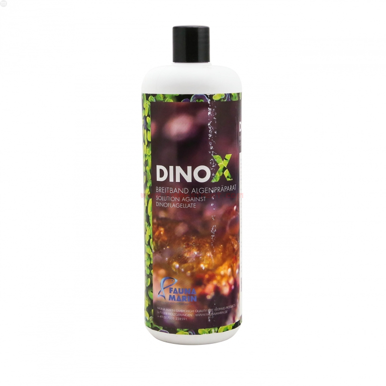 DINO X (former Algae X) is a very strong and effective solution to remove any hairy or plague type algae growth in Reef Tanks, it also removes dinoflagellates very succesful. It treats algae plauges in reef aquariums without harming any corals. DINO X does not destabilise the aquarium system. DINO X is not a treatment for Cyano bacteria.