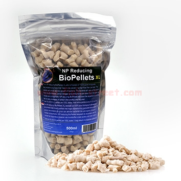 The positive effects of NP-reducing BioPellets on water quality are based on the principle of immobilization. Waste products from the water, mainly nitrate and phosphate, are converted into bacteria. This keeps the aquarium water clean. The new formula NP-reducing BioPellets are composed of 100 % pure biologically degradable polymers that can be placed in a fluidized filter or filter canister. The pellets will allow aerobic growth of bacteria which consequently will consume nitrate and phosphate simultaneously. The bacteria will use up the carbon from the BioPellets, whilst nitrogen and phosphorus are taken from the water as nitrate and (ortho)phosphate. This conversion of organic BioPellets (together with inorganic nitrogen and phosphorus) into microbial biomass is called immobilization. In addition, anaerobic layers will develop, resulting in additional denitrification.
