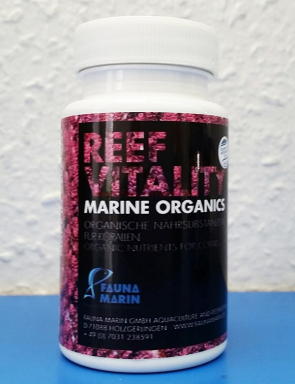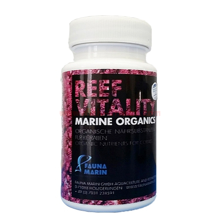 Organic nurients for corals growth booster & color enhancer. Reef vitality is a particulate food for all corals and sponges. It contains diverse marine organic and inorganic materials which characteristically show high similarity to natural compounds found in the coral reef environment, and perfectly cover the needs of your corals.
